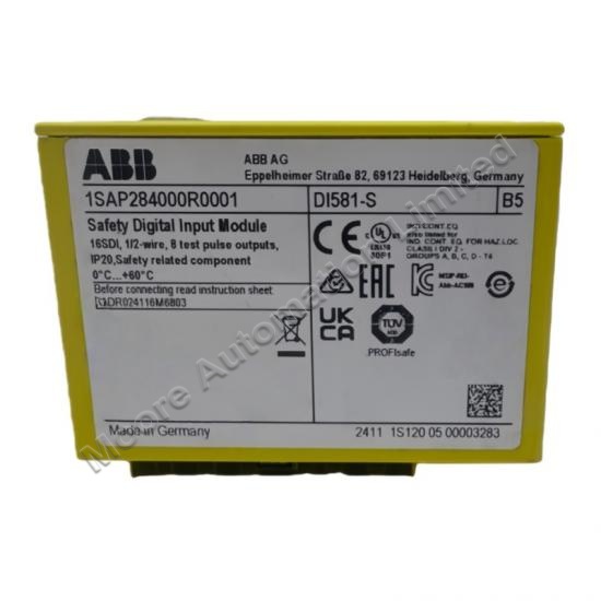 The DI581-S 1SAP284000R0001 Safety Digital Input Module is a high-performance safety module designed for industrial control systems requiring safety-critical applications.With a robust design, it is ideal for use in manufacturing, process control, and other industries that demand high levels of safety and reliability.