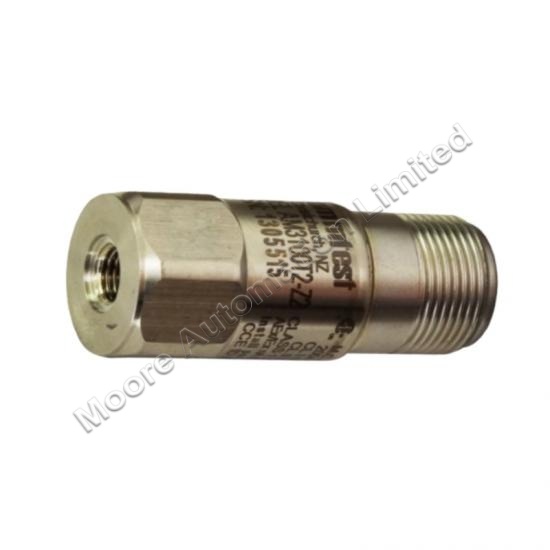 The Bently Nevada AM3100T2-Z2 Accelerometer is a rugged, high-sensitivity vibration sensor designed for accurate acceleration measurement in rotating machinery. It delivers 100 mV/g sensitivity, operates over a wide frequency range (0.7–9,000 Hz ±10%), and withstands harsh environments with its 316L stainless steel housing.