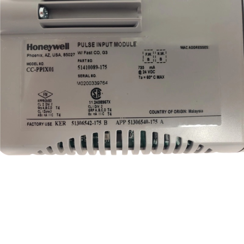 The HONEYWELL CC-PPIX01 51410089-175 Pulse Input Module (PIM) provides the Experion C300 controller with the ability to monitor various pulse input field values. The PI module processes signals from pulse-generating devices and provides a calculated rate and an accumulated total.