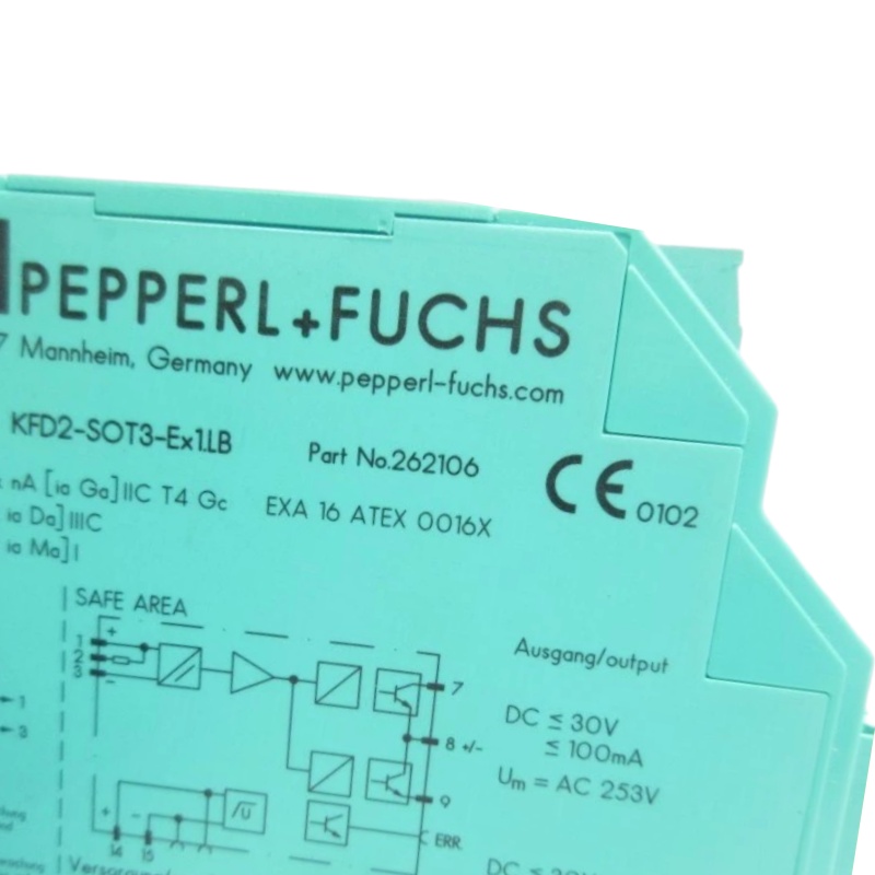 The Pepperl+Fuchs KFD2-SOT3-EX1.LB is a 1-channel isolated switch amplifier for intrinsic safety applications. The KFD2-SOT3-EX1.LB operates with a 24 V DC supply and supports a switching frequency of up to 5 kHz.This device functions as a signal conditioner, transferring digital signals (NAMUR sensors or dry contacts) from hazardous areas to safe areas.