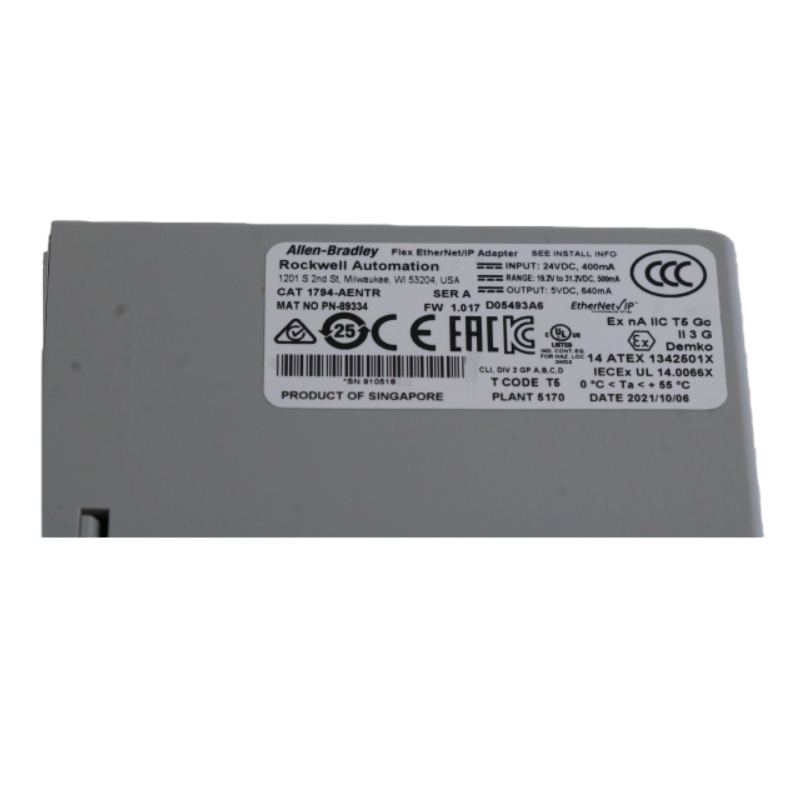 The PLC 1734-AENTR 2-Port EtherNet/IP I/O Module (Note: the model name suggests it is actually an analog output module) is an analog output module manufactured by Rockwell Automation as part of its Flex I/O series. Its applications span a wide range of industries, including manufacturing (e.g., automotive assembly, food and beverage processing), chemical and petroleum, water and wastewater treatment, pharmaceuticals, and energy management.