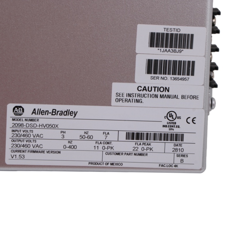 The PLC 2098-DSD-HV050X is an Ultra 3000i Multi-Axis Digital Servo Drive with indexing capability. It has a continuous output power of 2.5 kW at 230VAC and 5.0 kW at 460VAC with Continuous Output Current 11 A and Intermittent Output Current of 22 A.
