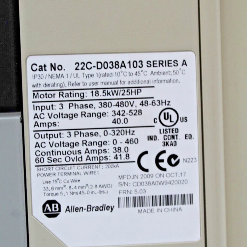 The PLC 22C-D038A103 is a PowerFlex 400 AC Drive. This AC Drive is specifically compatible for industrial fan and pump applications. It is powered with an input voltage range of 342-528VAC, 3-phase with applicable motor output of 38.0 A and Power of 18.5kW (25.0 HP).