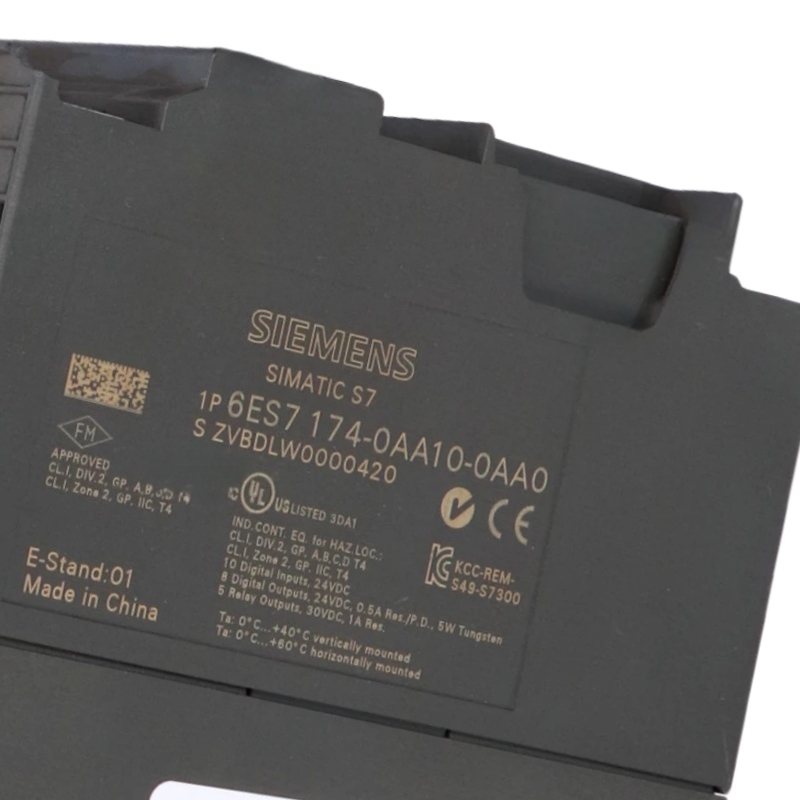 The Siemens 6ES7174-0AA10-0AA0 is equipped with 10 digital inputs and 8 digital outputs, supporting a wide range of control and signaling functions.