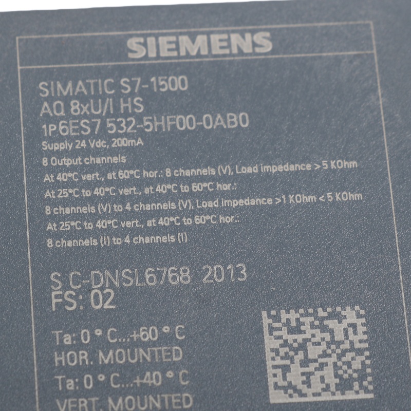 The SIEMENS 6ES7532-5HF00-0AB0 is a high-performance analog output module. It supports 8 channels, each configurable for voltage or current output. This module features high accuracy (0.3%) and high-speed output (0.125ms oversampling). |